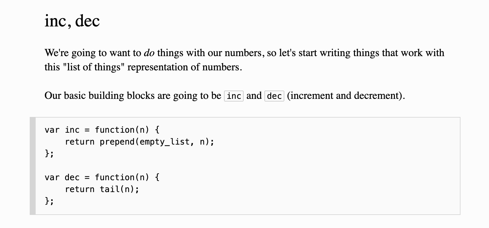 Sharing a brilliant post in which Steve Losh shows, in JavaScript, how you can build up the constructs of arithmetic and eventually arrays using only lambda functions