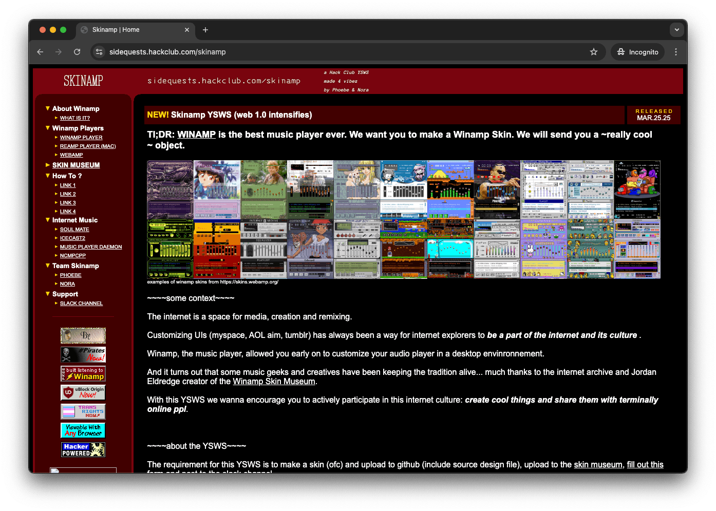 Hack Club is running a program where teens who make a Winamp skin, and upload it to the Winamp Skin Museum, will be rewarded with a prize