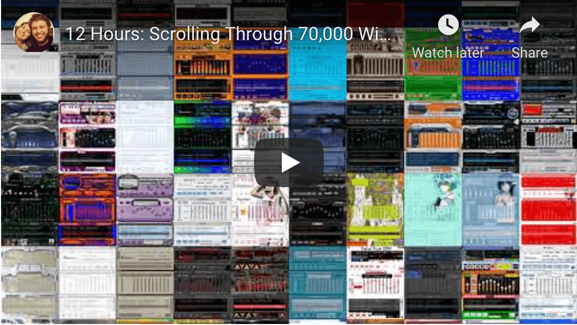 Making a video that smoothly scrolls through 70k Winamp skins over the course of 12 hours.