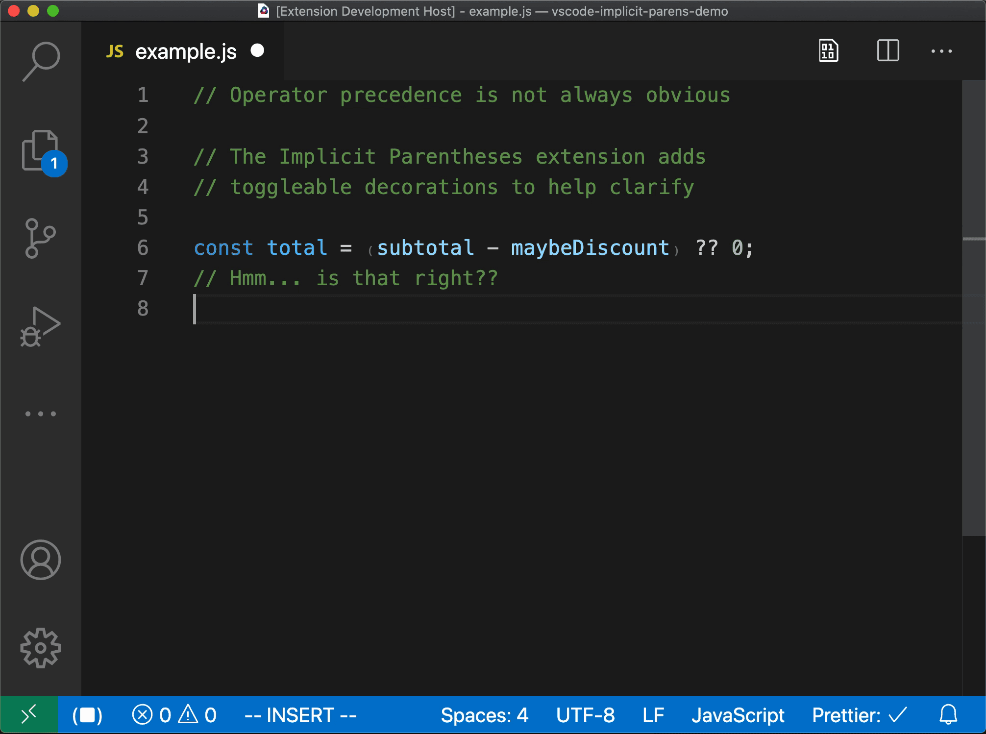 I wrote a VS Code extension which shows subscript parentheses in your JS code to help clarify operator precedence.